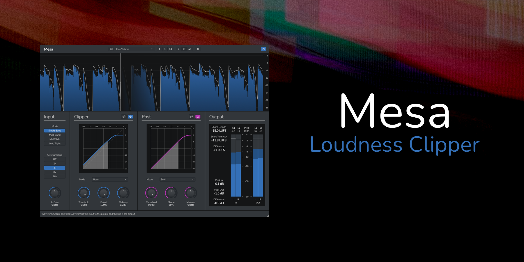 Mesa is a multi-mode clipper for controlling peaks and increasing loudness without pumping.